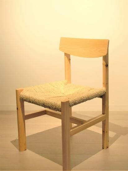 BC-02IGUSAチェアは、紀州ヒノキの虫食い材(あかね材)をフレームに使用したRe-barrackオリジナルのチェアです。